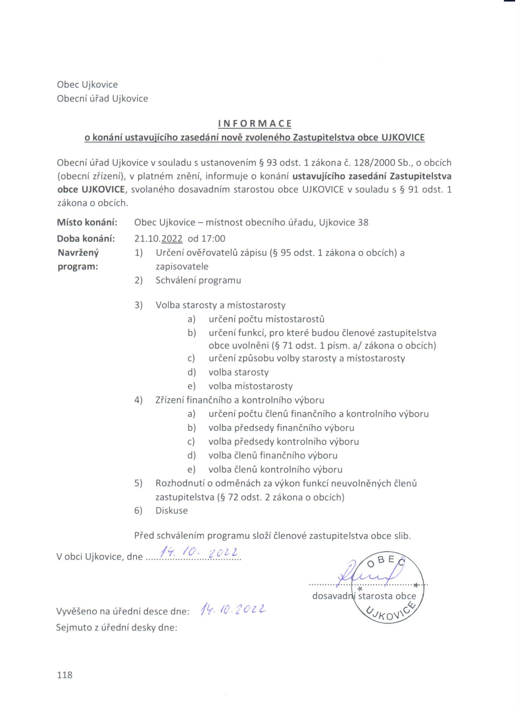 Vyvěšeno: 14. 10. 2022 Sejmuto: 22. 10. 2022
