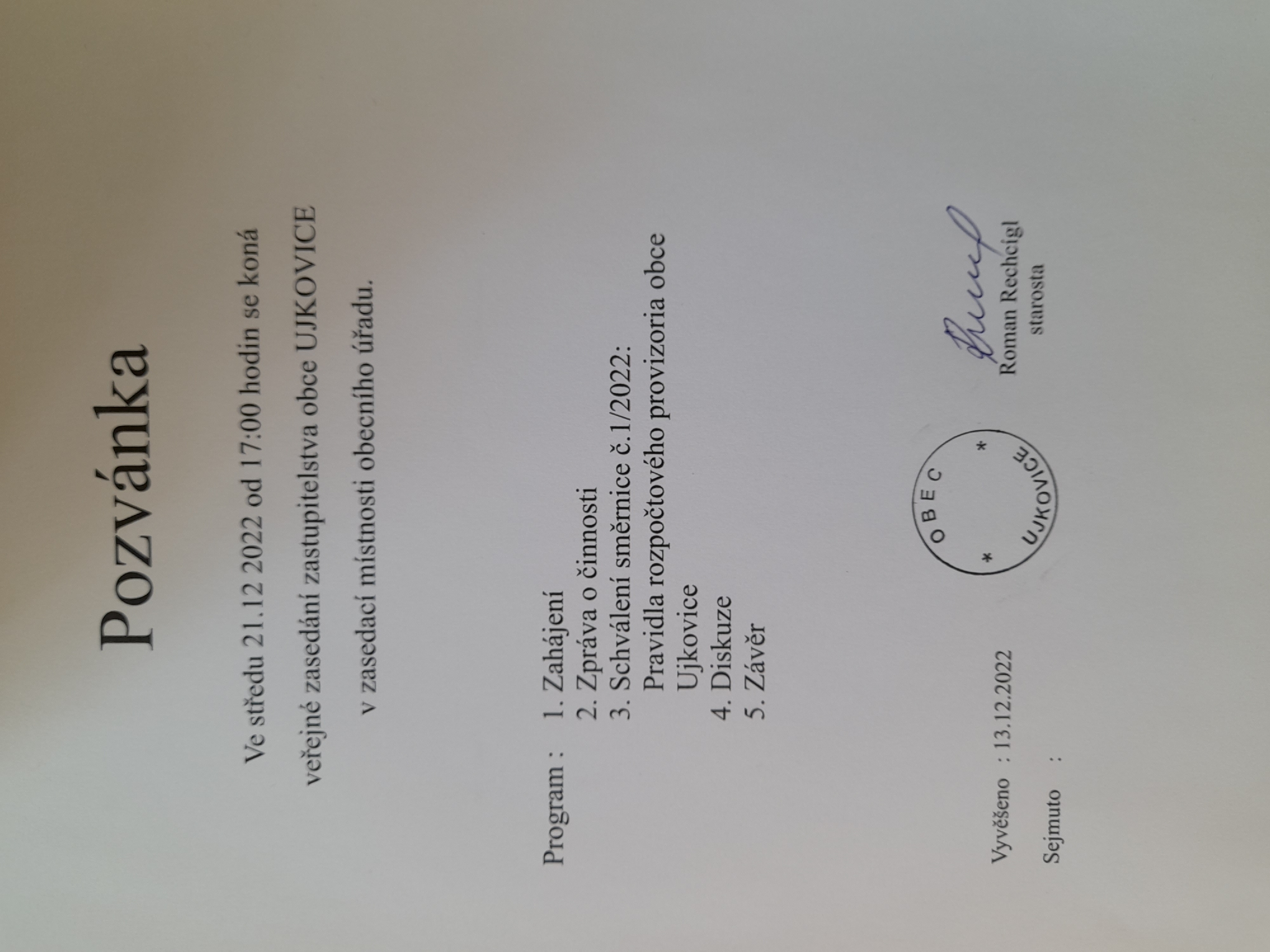 Vyvěšeno: 13. 12. 2022 Sejmuto: 22. 12. 2022